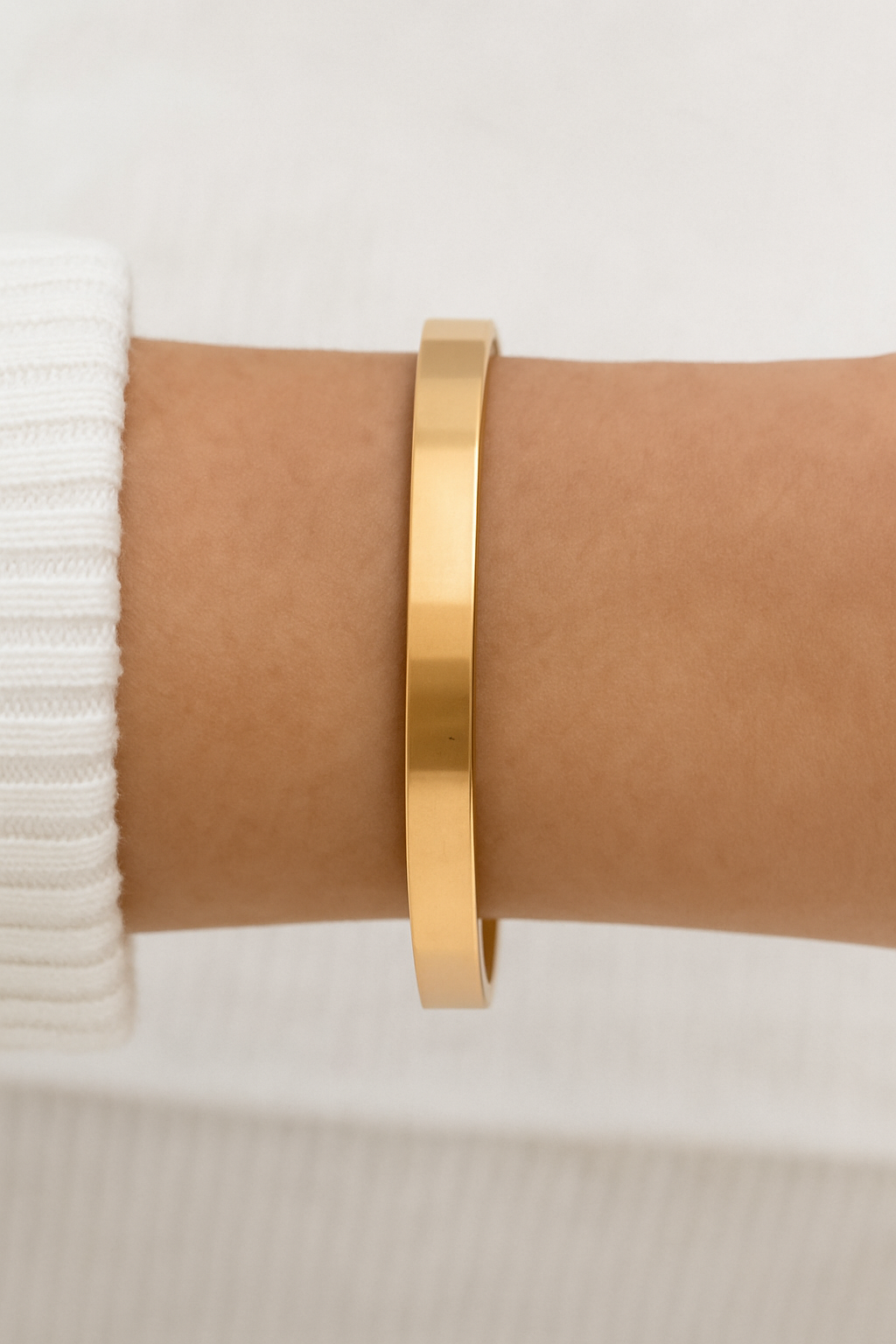 Brățară tip bandă, perfect finisată, cu un luciu intens ce reflectă eleganța pură — o piesă clasică reinterpretată modern.